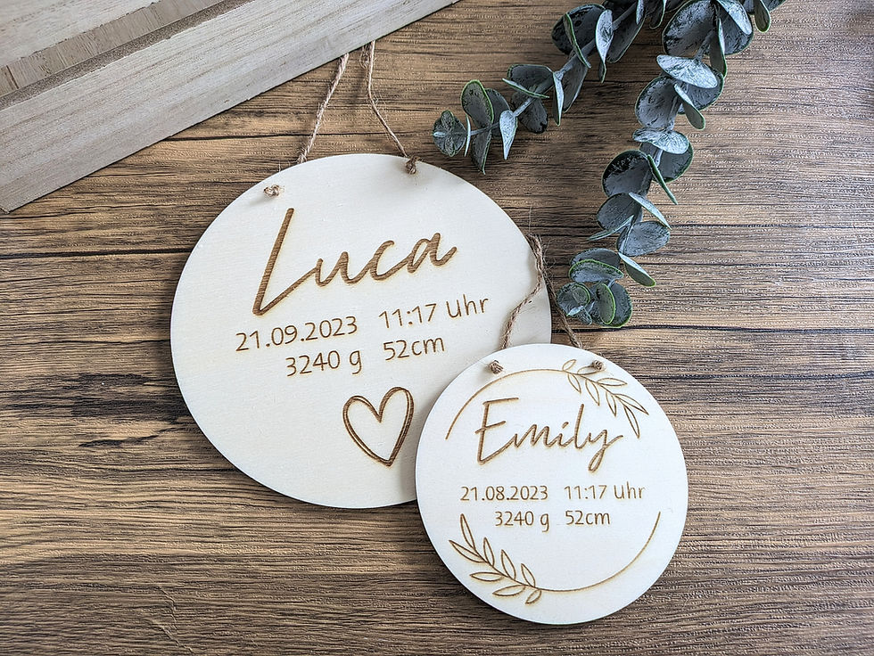 Namensschild Kind Baby Geburt Geschenk Taufe Geburtsdaten